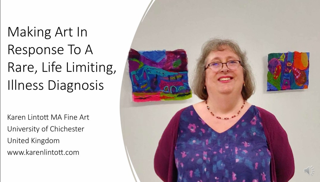 How does one comprehend and adjust to a diagnosis of a rare life-limiting illness? This paper discusses how I have used art to respond to a diagnosis of Amyloidosis. The discussion is set within the context of artists, Jo Spence, Robert Pope, Elizabeth Jameson, Deborah Padfield, and Eugenie Lee who made work in response to cancer, multiple sclerosis, chronic pain, and endometriosis diagnoses. The paper discusses how and what art can communicate about the experience of serious illness and will examine how (Murray & Gray, 2008) views on the psychology of health and (Carel, 2019) considerations of phenomenology can be used to interpret the experience of ill health for the individual. The paper will also consider how, if artwork is made as part of a healing or therapeutic process, it can also communicate something of the experience to others including clinicians, other patients, carers and the wider public. Set within current debate on the role of the arts in health and well-being, the paper considers how art can interpret and communicate the medical and personal reality of complex medical conditions and the experience of living with those conditions.