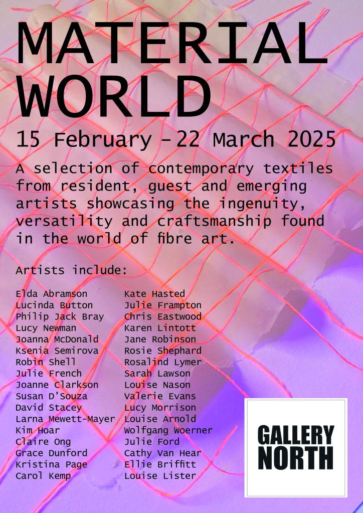 Material World Exhibition Screenshot Delighted to be part of this exhibition at Gallery North in Hailsham. Screenshot Share this: Click to share on Facebook (Opens in new window) Facebook Click to share on X (Opens in new window) X Click to share on Pinterest (Opens in new window) Pinterest Click to share on LinkedIn (Opens in new window) LinkedIn Click to share on WhatsApp (Opens in new window) WhatsApp Click to print (Opens in new window) Print Click to email a link to a friend (Opens in new window) Email Like Loading... Related 13/02/2025 by Karen Lintott Categories: Exhibitions, TextilesTags: art, Exhibitions, Textiles Leave a comment